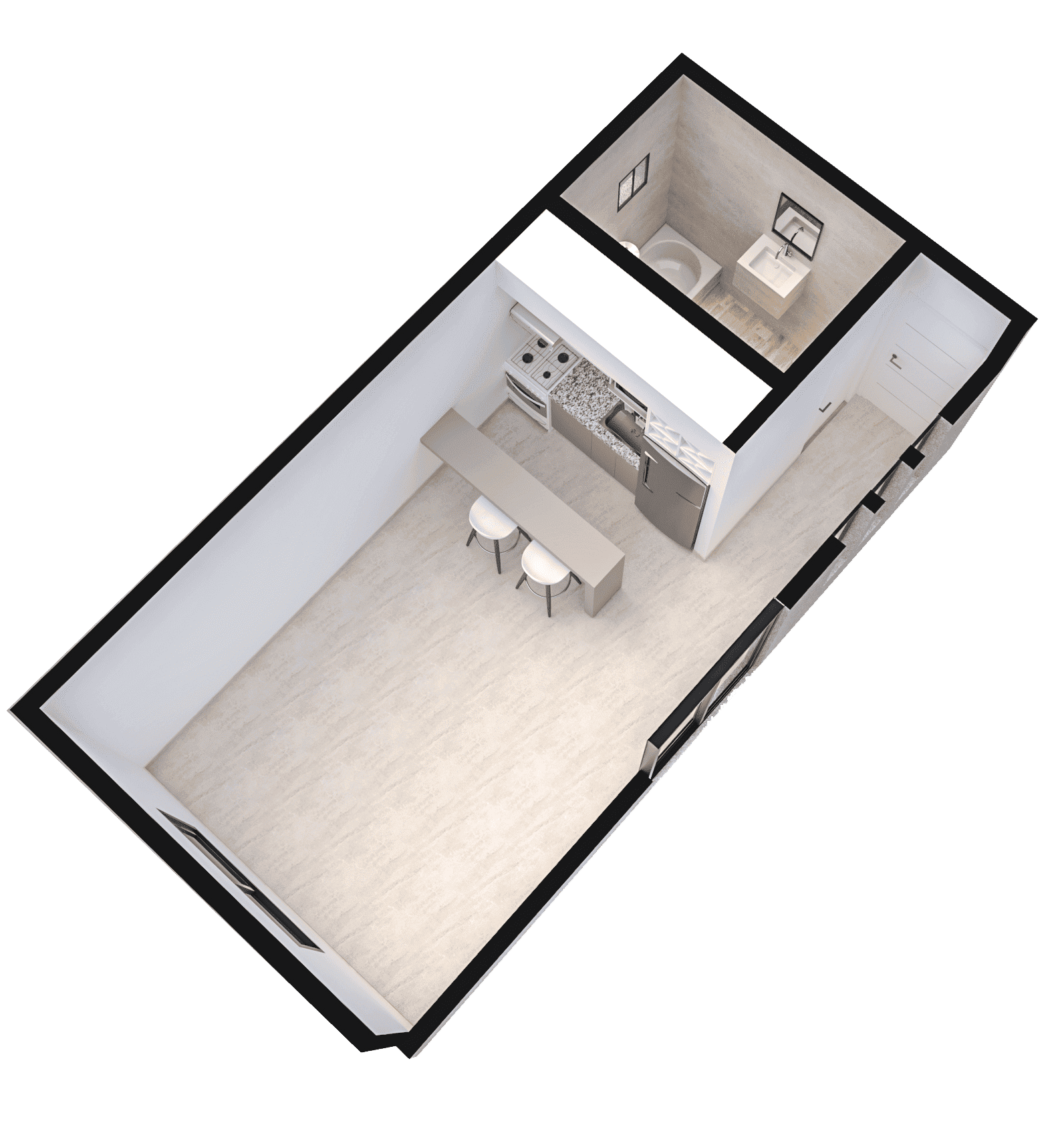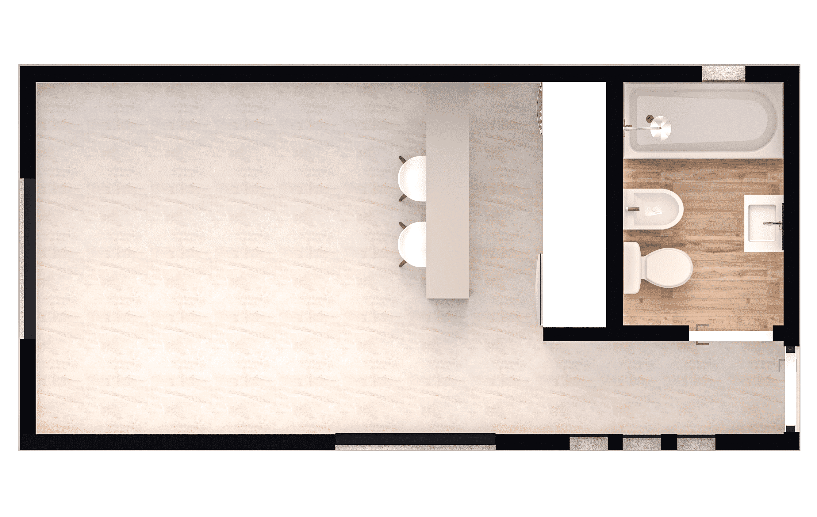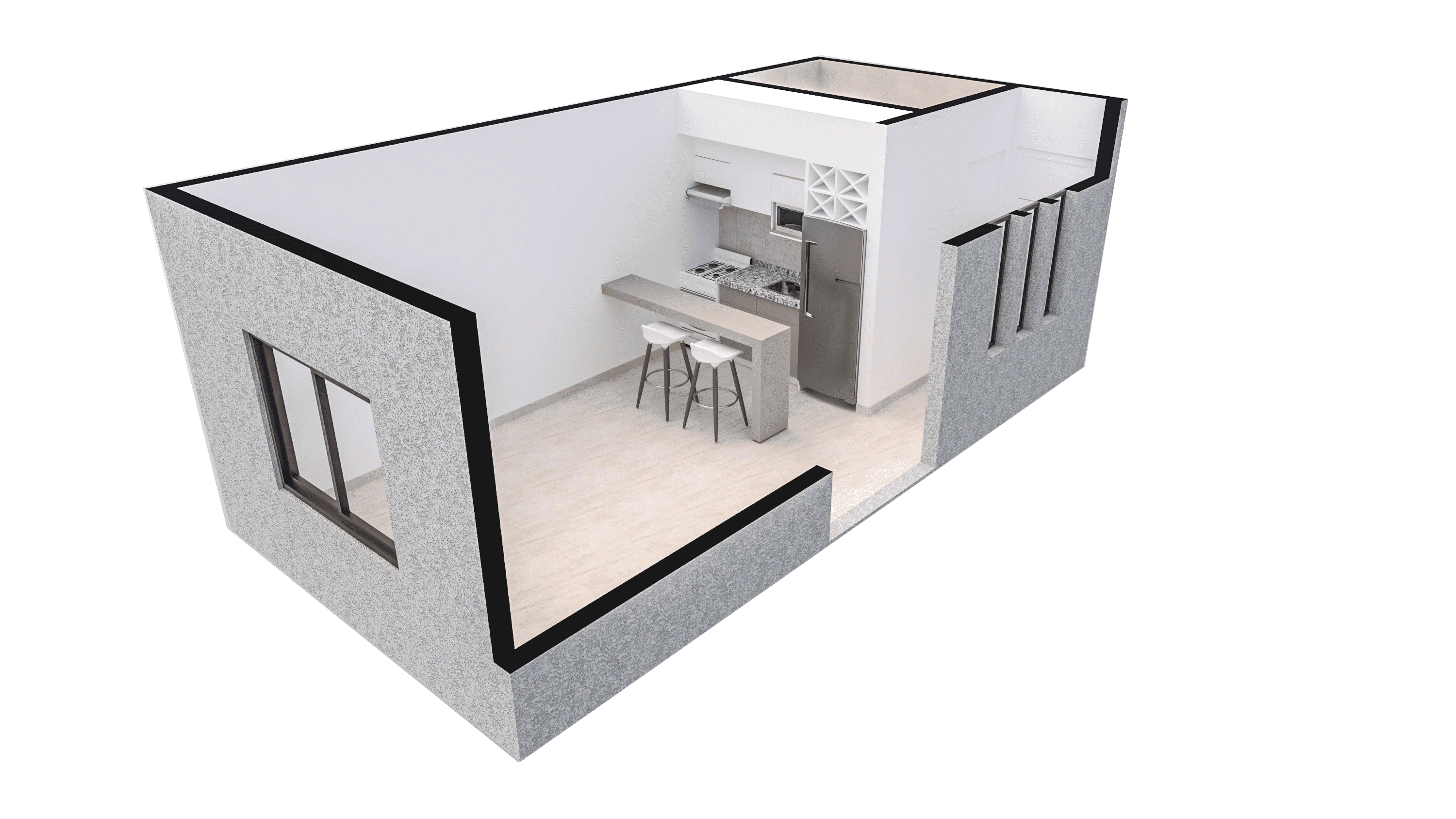 Modelo ONEGA – La vivienda Modular ONEGA de 26 m2 es una solución compacta y eficiente en un solo ambiente, ideal para quienes buscan practicidad sin renunciar al confort. Construida con hormigón celular con doble malla de hierro, ofrece alta resistencia, aislación térmica y acústica.